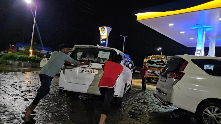 પેટ્રોલ પંપની નજીક બંધ પડી મુખ્યમંત્રીની કાર