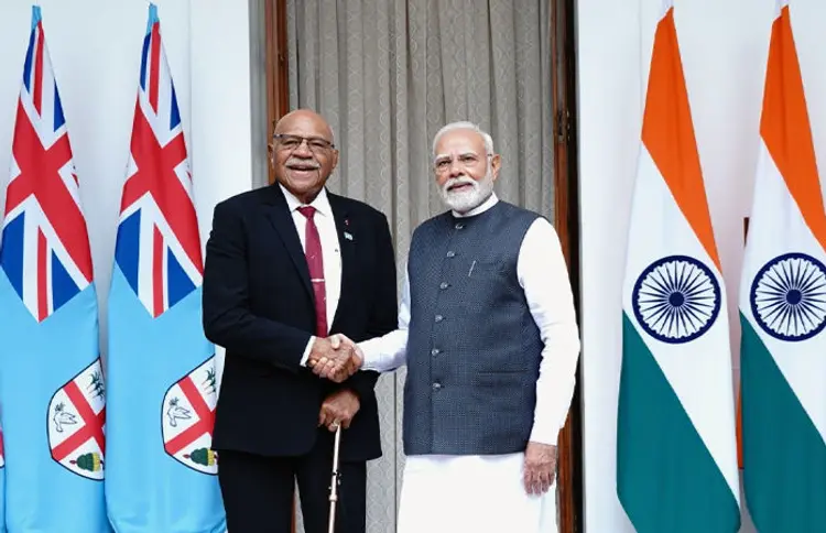 ફિજીના વડાપ્રધાન સિટિવેની લિગામમાદા રાબુકા હાલમાં ભારતની ત્રણ દિવસીય મુલાકાતે છે. મંગળવારે તેઓ નવી દિલ્હીના સપ્રુ હાઉસ ખાતે ઇન્ડિયન કાઉન્સિલ ઓફ વર્લ્ડ અફેયર્સ (ICWA) દ્વારા આયોજિત ઓશન ઓફ પીસ લેકચરમાં હાજર રહ્યા હતા. આ કાર્યક્રમ દરમિયાન રાબુકાએ શ્રોતાઓ સાથેની ચર્ચામાં અમેરિકાના પૂર્વ પ્રમુખ ડોનાલ્ડ ટ્રમ્પ દ્વારા ભારતીય માલસામાન પર લગાવવામાં આવેલા 50% ટેરિફને લઈને કટાક્ષ કર્યો.