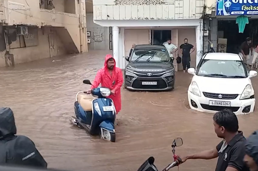 હાલોલમાં મેઘરાજાનો ધમાકેદાર વરસાદ: 2 કલાકમાં 7 ઈંચ, રસ્તા નદીમા ફેરવાયા