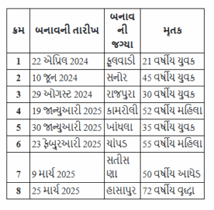 ગયા એક વર્ષ દરમિયાન જિલ્લાના ગ્રામ્ય વિસ્તારોમાં મગરના હુમલામાં કુલ 8 લોકોના મોત થયા છે. રાજ્ય સરકારે આ તમામ મૃતકોના પરિવારોને રૂ. 65 લાખનું વળતર ચૂકવ્યું છે. શહેર વિસ્તારમાં મગરના હુમલાના એક પણ બનાવ નોંધાયા નથી.