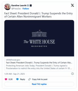 વ્હાઇટ હાઉસની પ્રેસ સેક્રેટરી કરોલાઈન લેવિટે સ્પષ્ટ કર્યું કે હાલના વિઝા ધરાવતા અને વિદેશમાં રહેલા લોકોને અમેરિકા પ્રવેશ માટે કોઈ વધારાની રકમ ચૂકવવાની જરૂર નહીં રહે અને તેઓ સામાન્ય રીતે આવનજાવન કરી શકશે.