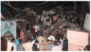 સ્થાનિક માહિતી અનુસાર વરસાદના કારણે ઇમારતમાં તિરાડો પડી જવાના કારણે આ દુર્ઘટના બની હોવાનું માનવામાં આવે છે.