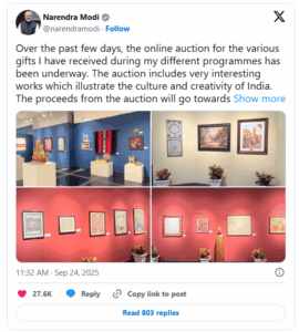 17 સપ્ટેમ્બર, તેમના જન્મદિવસ નિમિત્તે સવારે 10 વાગ્યે શરૂ થયેલી આ હરાજી 2 ઓક્ટોબર સાંજે 5 વાગ્યે સમાપ્ત થશે.